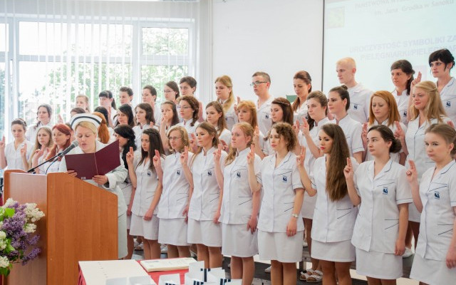 SANOK. 47 studentów pielęgniarstwa Państwowej Wyższej Szkoły Zawodowej otrzymało symboliczne, białe czepki.