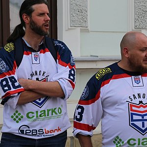 Kilkudziesięciu kibiców i sympatyków hokeja pełnych obaw o przyszłość seniorskiego drużyny z Sanoka o godzinie 17 stawiło się w Urzędzie Miasta. Mieli pikietować, ale policja nie wydała zezwolenia na zgromadzenie. W Sali Herbowej spotkali się z przedstawicielami spółki STS SA - Damianem Delektą, prezesem zarządu spółki, Maciejem Bilańskim, dyrektorem sportowym spółki i Tadeuszem Pióro, burmistrzem Sanoka.