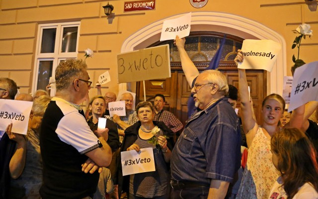 Uczestnicy protestu pod sąd przynieśli świece, znicze, białe róże i transparenty, na których napisali m.in. "3xveto", "wolnesądy" oraz "wolność, równość, konstytucja". Odśpiewali hymn Polski, złożyli pod drzwiami Sądu Rejonowego znicze i świece. Skandowali m.in. hasła: "Precz z Kaczorem-dyktatorem" i "wolne sądy". W ten sposób sprzeciwiają się zmianom proponowanym przez Prawo i Sprawiedliwość w Ustawie o Sądzie Najwyższym.