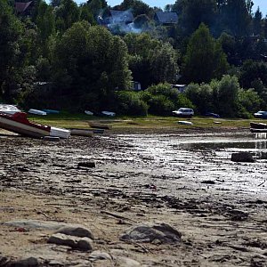 BIESZCZADY. W bieszczadzkich rzekach i Jeziorze Solińskim, co raz mniej wody. Do rekordu jeszcze trochę brakuje, ale już teraz w niektórych miejscach można spacerować po dnie Jeziora Solińskiego i Sanu. Na zdjęciach: Zatoka Czarnego w Chrewcie, Wołkowyja i San w Rajskiem.