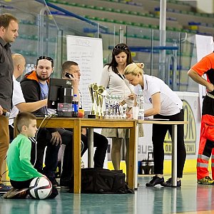 I rozpoczął się właściwy Turniej w którym udział wzięło 7 drużyn: Beniaminek Krosno, AktivPro Rymanów, Orzełek Bażanówka, Akademia Młodego Piłkarza Orzeł Sosnowiec, MOSiR Brzozów, AC Milan ( AP Sanok czarni) oraz Juventus ( AP Sanok żółci). Bardzo miłym akcentem było pojawienie się w Sanoku zaprzyjaźnionej drużyny aż z Sosnowca. Turniej stał na bardzo wyrównanym poziomie o czym świadczy fakt, że między pierwszą a piątą drużyną różnica punktów wynosiła zaledwie 4. Cały Turniej wygrała drużyna Beniaminka Krosno, która uległa jedynie ekipie AC Milan ( Akademia Piłkarska Sanok). Na podium znalazła się drużyna AktivPro Rymanów oraz MOSiR Brzozów. Najlepszym bramkarzem Turnieju okrzyknięto Jakuba Piróga (Orzełek Bażanówka) a najlepszymi strzelcami zostali Paweł Pelczarski (AktivPro Rymanów) i Mateusz Adamski ( Akademia Piłkarska Sanok). Świetne zagrania, popisy strzeleckie, parady bramkarskie - było dzisiaj wszystko. Dziękujemy wszystkim za udział i wspaniałą zabawę.