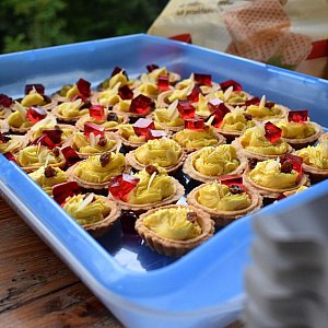 Jak przystało na prawdziwą biesiadę, oprócz strawy dla ducha była i strawa dla ciała - poczęstunek prosto z ogniska zorganizowany przez gospodarzy oraz pyszne domowe ciasta i bigos przygotowane przez panie z Koła Gospodyń Wiejskich Szczawne-Kulaszne. Dodatkową oprawę wydarzenia stanowiły prace hafciarskie pani Teresy Wasylów i Anety Baraniak. Nie mogło zabraknąć również Biesów i Czadów - czyli aniołów, diabłów, zakapiorów, niedźwiedzi i innych rzeźb dłuta Kazimierza Bzdyka ? bieszczadzkiego artysty.