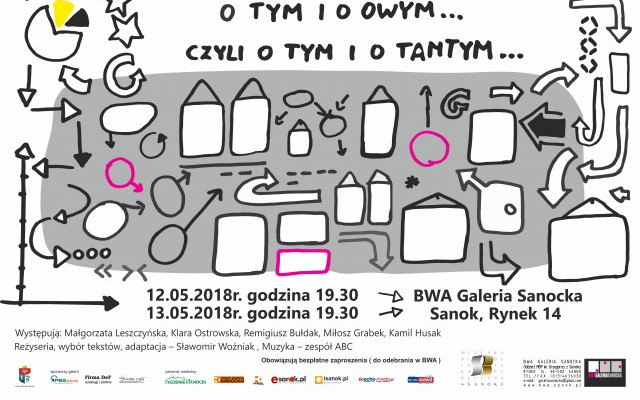 12 i 13 maja Teatr BWA (Scena Młodych) zaprasza na spektakl "O tym i o owym? czyli o tym i o tamtym? Początek o godzinie 19.30. Bezpłatne wejściówki do odebrania w BWA.