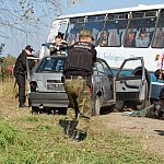 ZAGÓRZ. Zderzenie osobówki z autobusem, policyjne negocjacje z terrorystą, próba odbicia zakładników i obława na dilera narkotyków - to scenariusz międzynarodowych ćwiczeń, które odbyły się dzisiaj w Zagórzu. W ćwiczeniach uczestniczyły zespoły strażaków, pogotowia ratunkowego, goprowcy, policja, pogranicznicy oraz studenci Lwowskiego Państwowego Uniwersytetu Bezpieczeństwa Życia.
