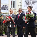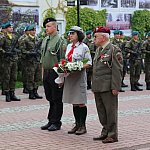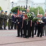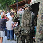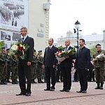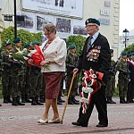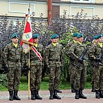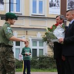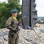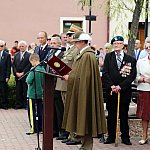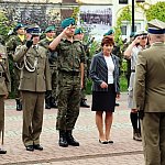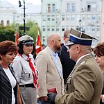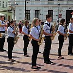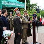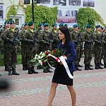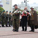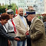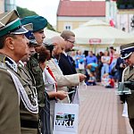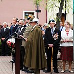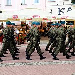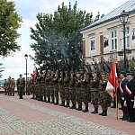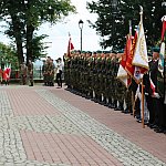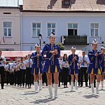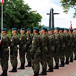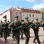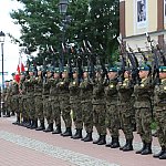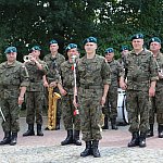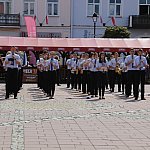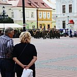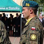 Sanockie obchody Święta Wojska Polskiego rozpoczęły się przemarszem spod budynku TG ?Sokół? w asyście Orkiestry Wojskowej pod pomnik ?Synom Ziemi Sanockiej?.