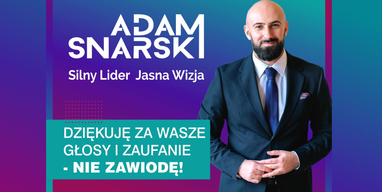 - To Wy Wspaniali Wyborcy zdecydowaliście. Pokazaliśmy moc! Prawda, odpowiedzialność i mądrość, zwyciężyła. Dziękuję. Zwyciężyliśmy! Jestem, Waszym Burmistrzem przez kolejną kadencję - napisał Adam Snarski na swoim facebookowym profilu, komentując niedzielne zwycięstwo.