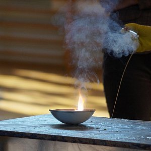 Na hali sportowej prezentowane były głównie doświadczenia z ciekłym azotem, który w temperaturze -196 st. C jest cieczą. Substancja ta w kontakcie z różnymi przedmiotami zmienia ich właściwości. Zanurzano w niej kwiatki, baloniki oraz piłeczki kauczukowe. Bardzo dużym zainteresowaniem cieszyły się też ?gotowane? w ciekłym azocie słodycze. Uczniowie wykonali dwa doświadczenia chemiczne: efektowną pastę dla słonia oraz spalanie nadmanganianu potasu za pomocą gliceryny. Ogromne poruszenie wśród widowni wywołały dymne kółka, za pomocą których nasi uczniowie strącali z głów gimnazjalistów plastikowe kubki. Eksperyment, w którym wytworzono chmurę w butelce, wzbudził lawinę braw. Na koniec tej części zostało wykonane bardzo spektakularne doświadczenie: ?wybuch azotu?, który prawie zatrząsł murami naszej szkoły.