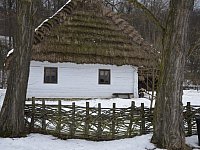 Zimowy skansen nocą w obiektywie pracowników Muzeum Budownictwa Ludowego w Sanoku, Roberta Mrozowskiego i Mariana Kraczkowskiego.